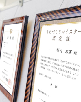厚労省認定「ものづくりマイスター」をはじめ、公的資格・認定を多数取得。技術と信頼の証です。